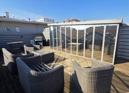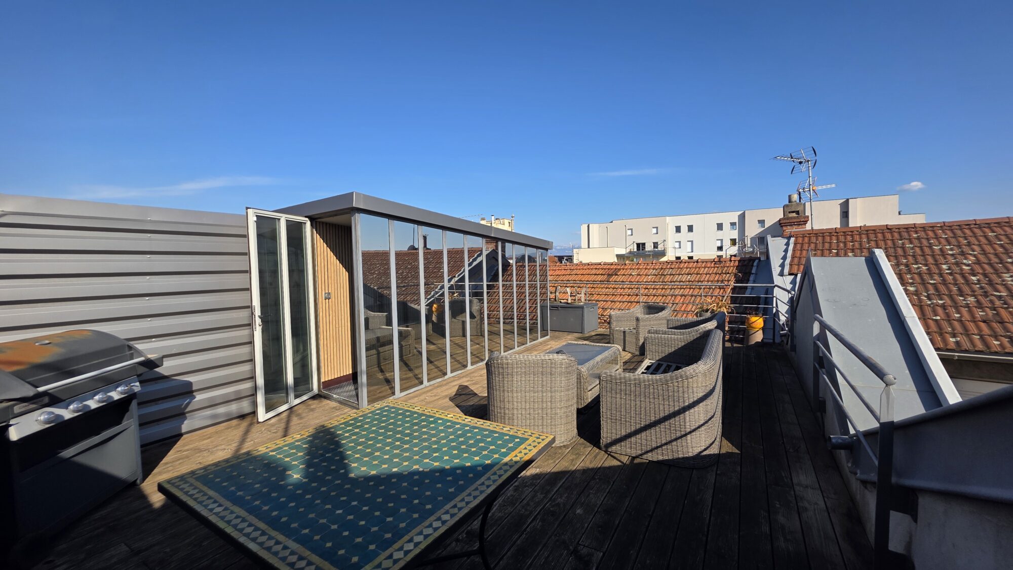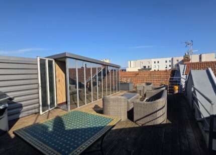 À l’extérieur, profitez d’une magnifique terrasse rooftop d’environ 40 m², véritable prolongement de l’appartement, idéale pour vos moments de détente ou soirées entre amis.